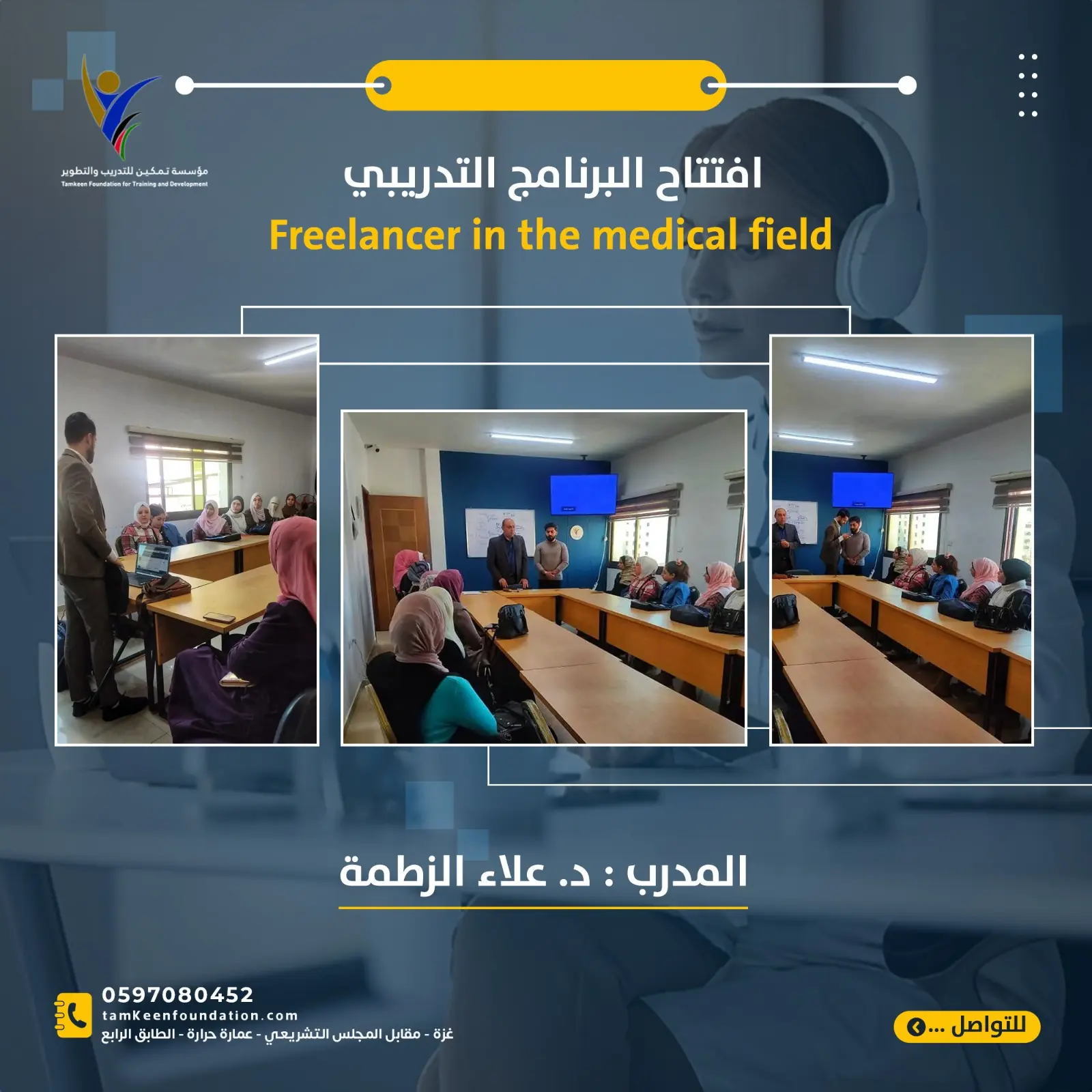 نظرا للتحديات التي يواجهها سوق العمل الفلسطيني وقلة فرص العمل التقليدية المتاحة للخريجين في التخصصات الطبية تم تصميم هذا البرنامج لمساعدة الخريجين من كافة التخصصات الطبية لايجاد فرص عمل عبر الانترنت في مجال العمل الحر.