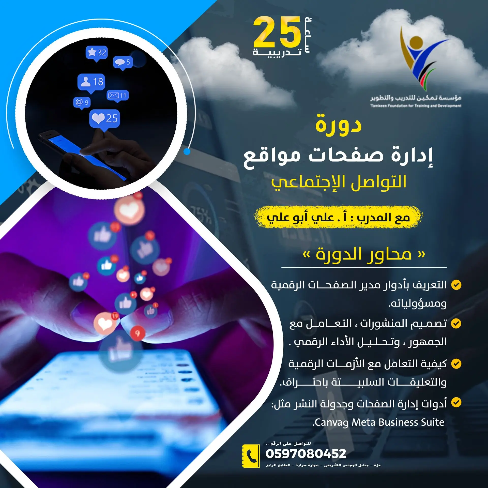 📢 انطلاق دورة “إدارة صفحات مواقع التواصل الاجتماعي” ضمن منحة “الوفاء والبناء”