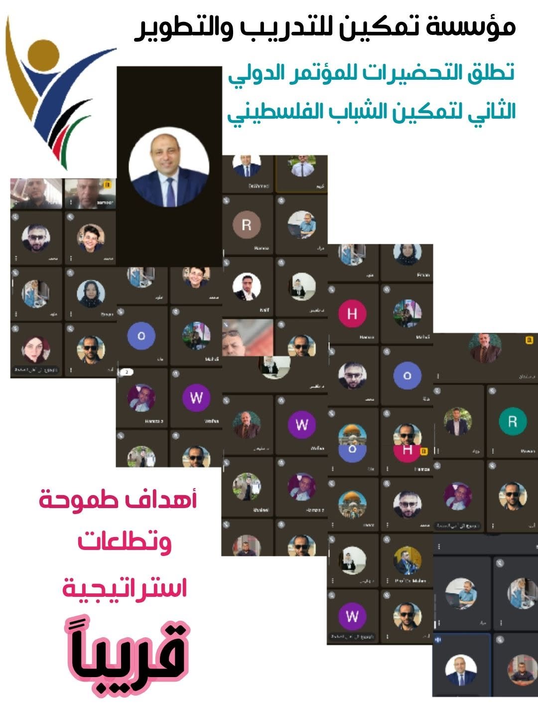 في خطوة تُعزز آمال الشباب الفلسطيني، انعقد الاجتماع الأول للجنة التحضيرية للمؤتمر الدولي الثاني “تمكين الشباب الفلسطيني” عبر منصة *Google Meet يوم ٤ مايو ٢٠٢٥ ، تحت قيادة الدكتور أحمد الوادية ، رئيس مجلس إدارة _مؤسسة تمكين للتدريب والتطوير_ .