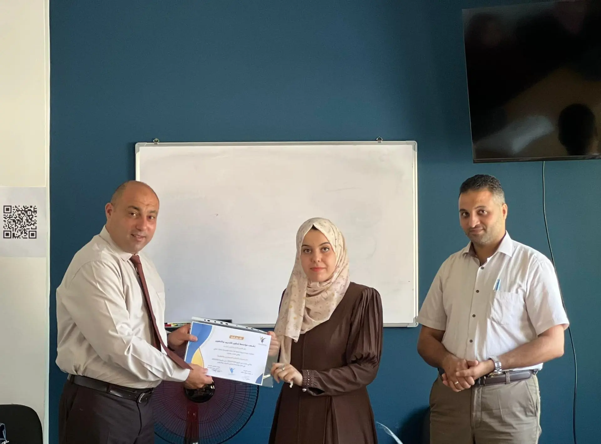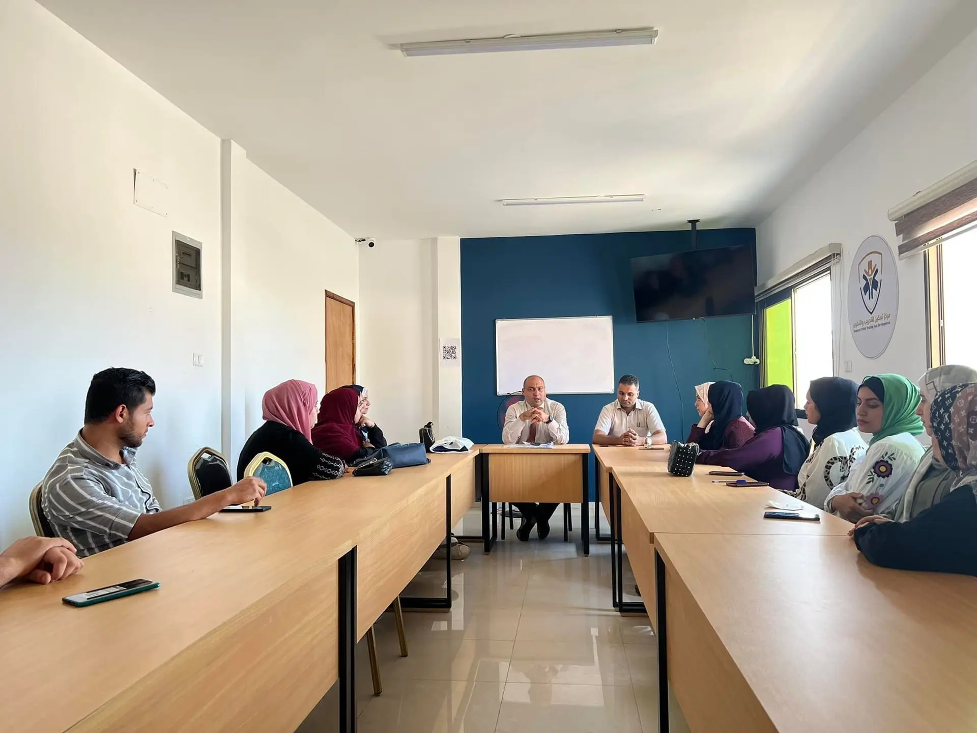 حيث استمع لأرائهم بخصوص الدورة، واستعرض د. الوادية أهم المشاريع المقبلة عليها المؤسسة وأهداف مؤتمر تمكين الشباب الفلسطيني المزمع عقده الفترة المقبلة، والتي ستساهم في تحقيق طموحات الخريجين وخدمة الشباب الفلسطيني وتعزيز المنظومة التعليمية وتطويرها.