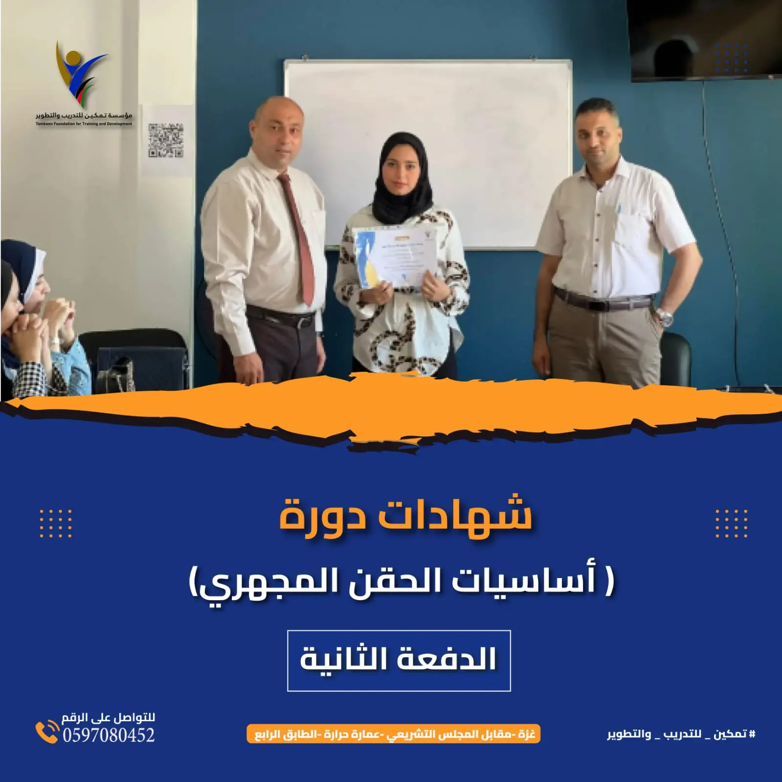🔸أقامت مؤسسة تمكين للتدريب والتطوير حفل توزيع شهادات الدورة التدريبية للمجموعة الثانية من دورة (أساسيات الحقن المجهري والعقم) التي أشرف عليها د. محمد مروان لقان المحاضر في قسم العلوم الطبية المخبرية في الجامعة الإسلامية أ. هناء خلا المنسقة العامة للمؤسسة.