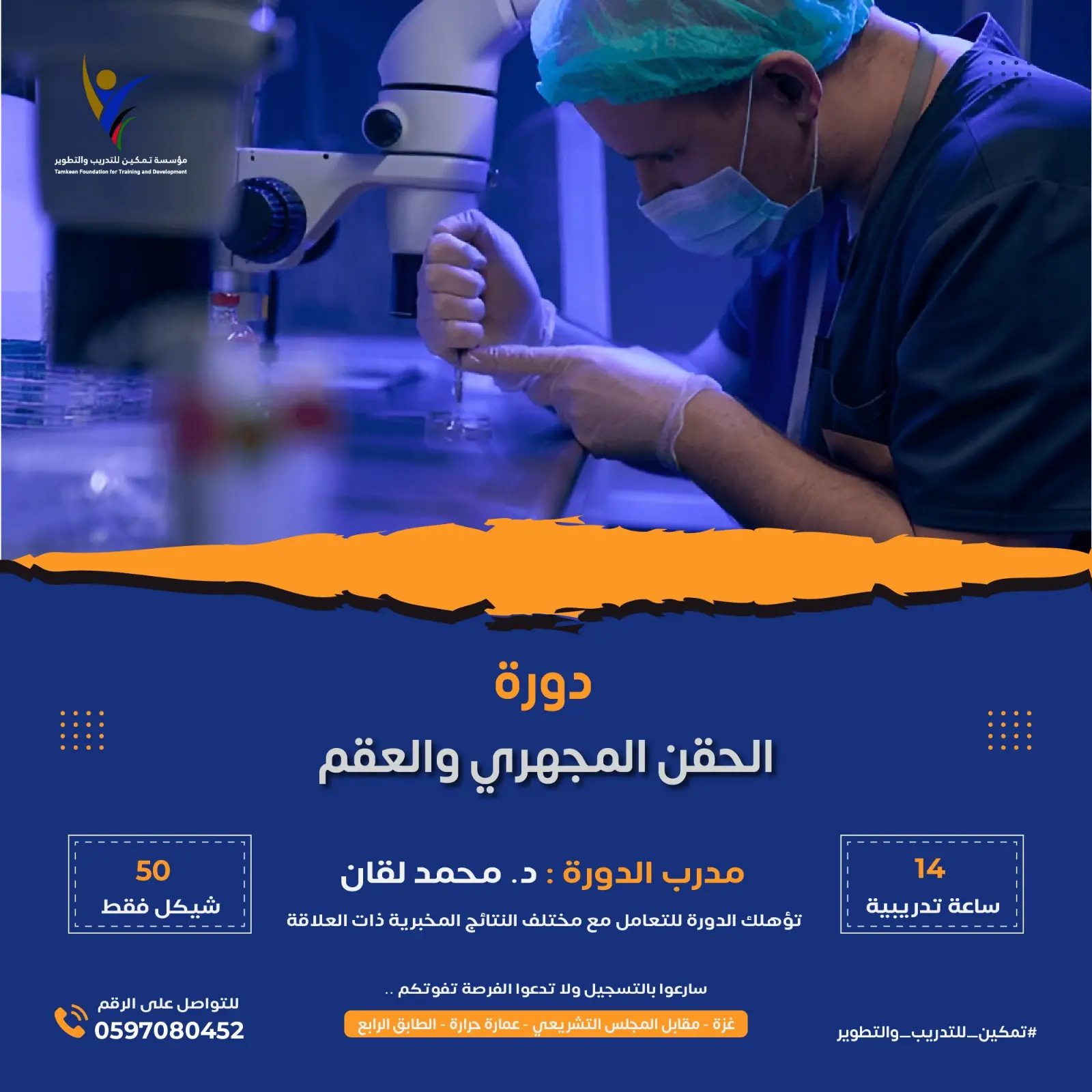 تعلن مؤسسة تمكين للتدريب والتطوير بعد إلحـاح كبير من طلبة الجامعات و كثرة الطلب من مختلف أنحاء قطاع غزة على دورة الحقن المجهري والعقم لأهميتها 🔥