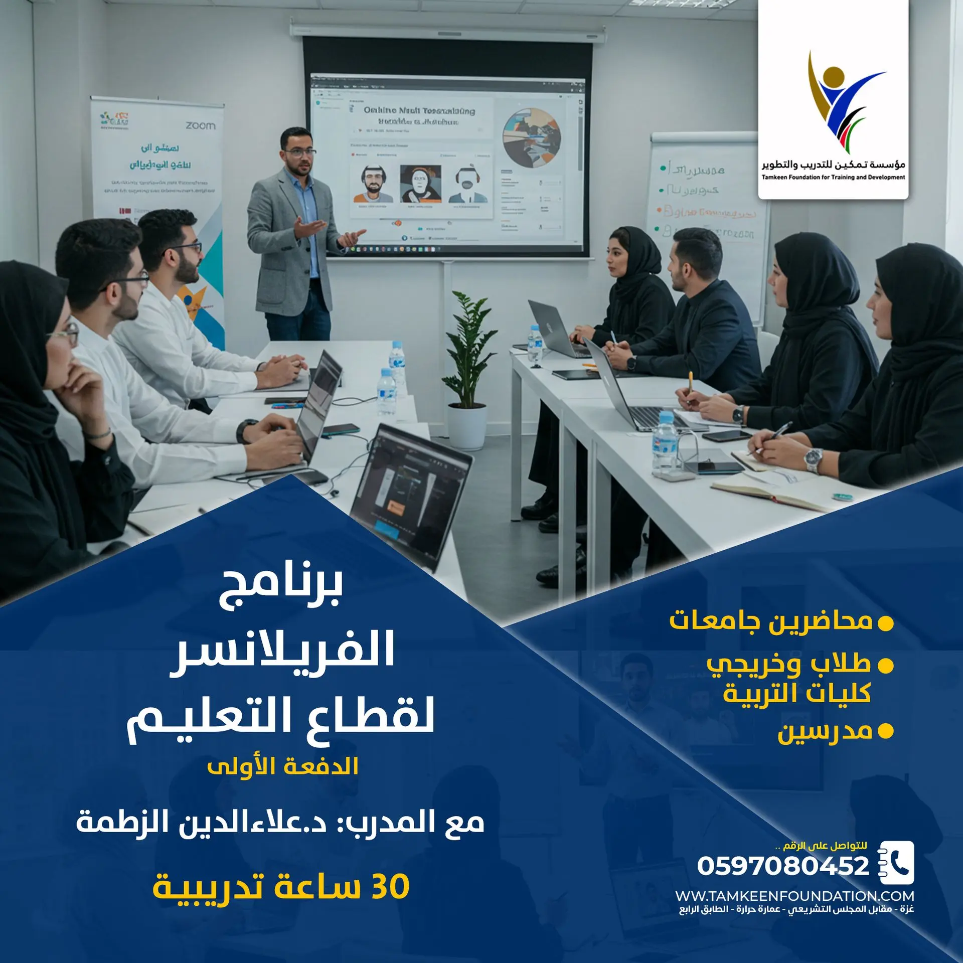 📌البرنامج هو عبارة عن 30 ساعة تدريبية في العمل الحر موجه للمعلمين وقطاع التعليم .