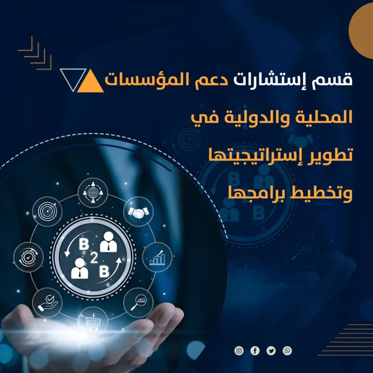 قسم استشارات دعم المؤسسات المحلية والدولية في تطوير إستراتيجيتها وتخطيط برامجها